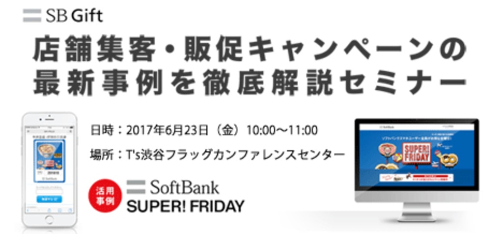 2017年6月23日 10時開催「ソフトバンク SUPER FRIDAYなど店舗集客・販促キャンペーンの最新事例を徹底解説」セミナー