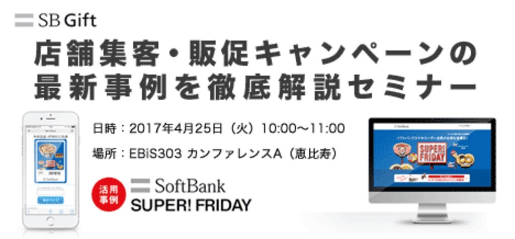 2017年4月25日 10時開催「ソフトバンク SUPER FRIDAYなど店舗集客・販促キャンペーンの最新事例を徹底解説」セミナー
