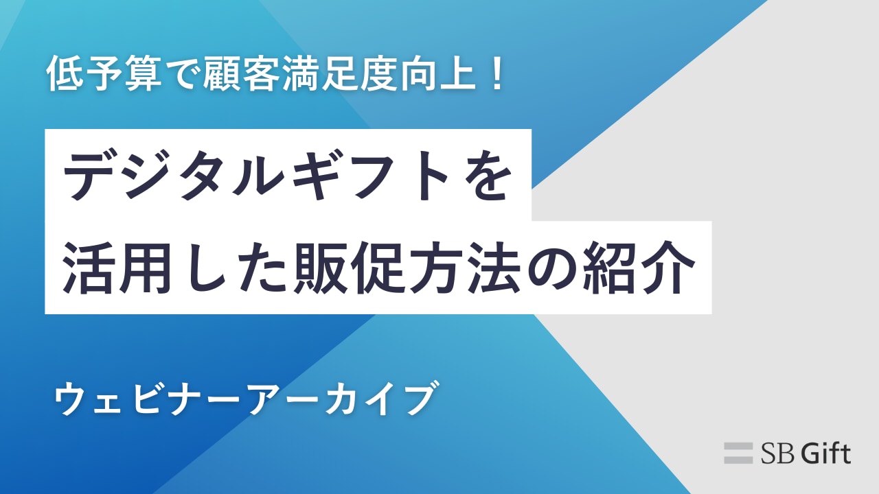 低予算で顧客満足度を向上させる、デジタルギフトを活用した販促方法をご紹介するセミナーを開催いたしました。 限られた予算で効果的な販促活動を行いたい、顧客に喜ばれる施策を探している、そんなマーケティングご担当者様におすすめです。